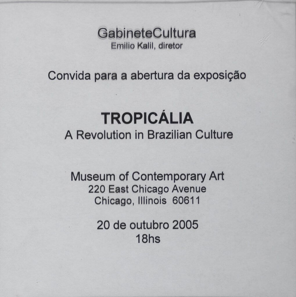 Convite para a abertura da exposição Tropicália: a revolution in Brazilian Culture, no Museum of Contemporary Art, Chicago.