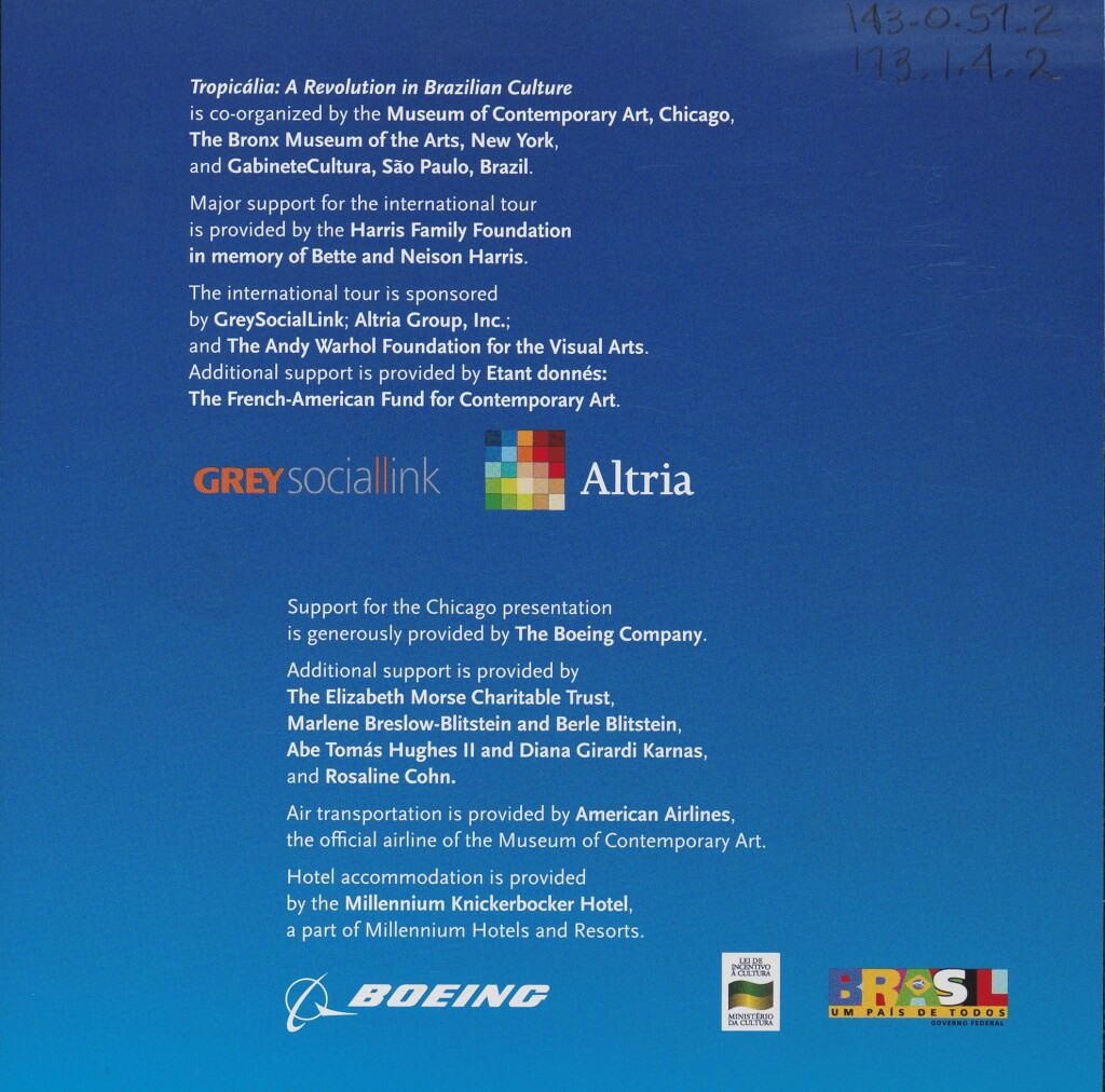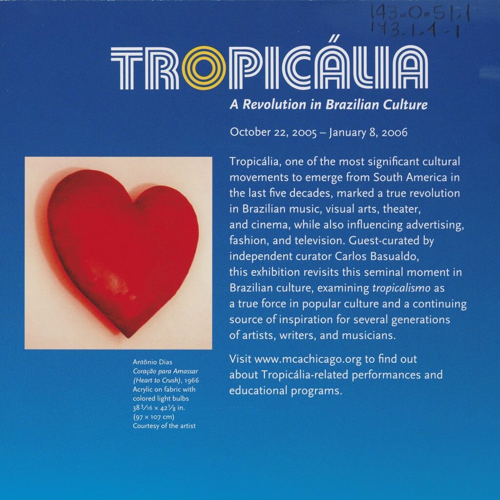 Prospecto da exposição "Tropicália: a revolution in Brazilian Culture", realizada no Museum of Contemporary Art, Chicago.