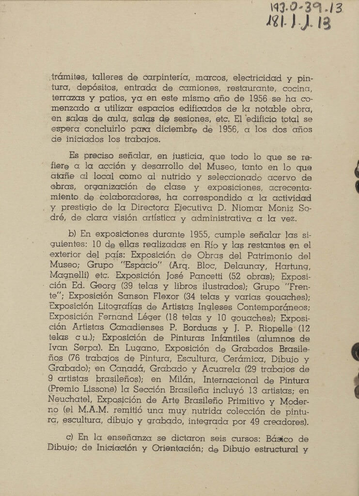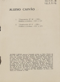 Catálogo da exposição “Pintura Brasileña Contemporánea”, ocorrida em 1956, no Instituto de Cultura Uruguaio-Brasileiro, Montevideo, Uruguai. O qual contem uma descrição de Lygia Clark.