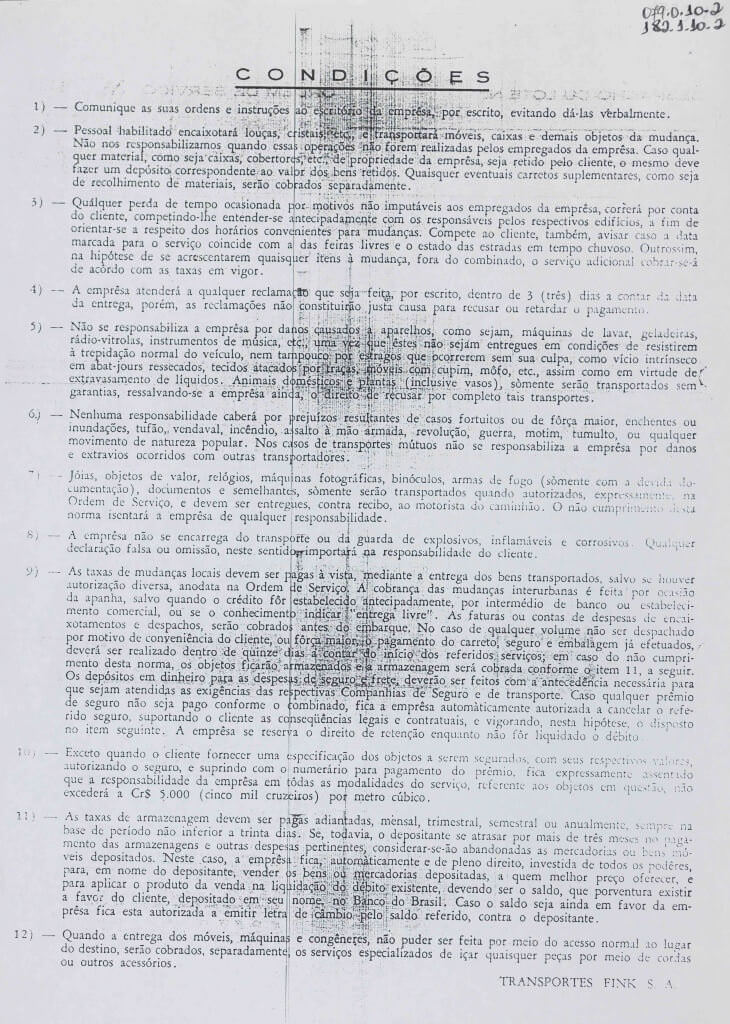 Correspondência da empresa "Transportes Fink", referente à entrega de um despacho marítimo, cujo destino seria os EUA, e a mercadoria seria um quadro a óleo. A procedência é do "Ministério das Relações Exteriores"