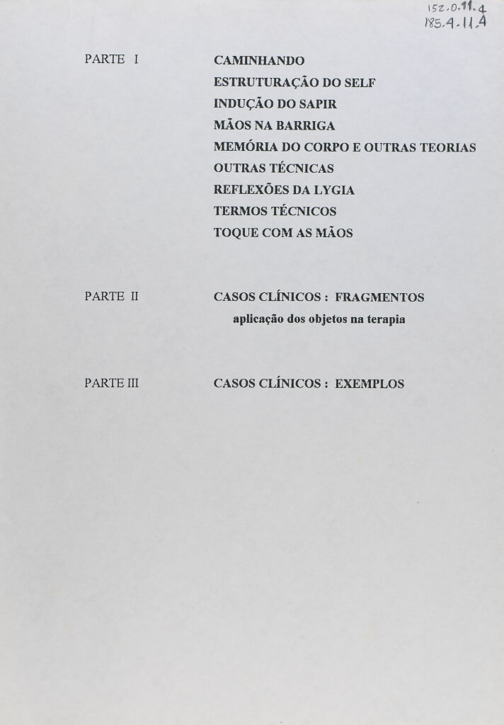 Projeto Lygia Clark, realizado pelo MAM-RJ, apoio do CNPq e desenvolvido por Gina Ferreira, em 1994. Sendo o título Memória do corpo - Glossario da pesquisa de casos clínicos, que foram realizados por Lygia Clark.