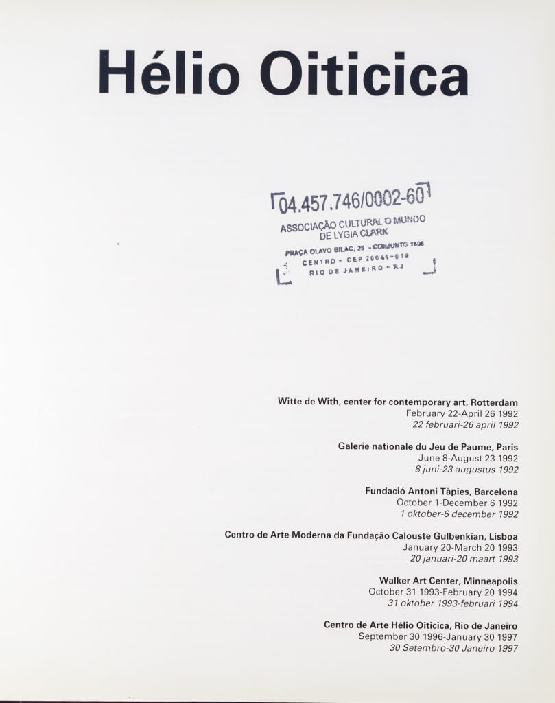 OITICICA, Hélio. Selection fo writings 1960-1980 / Seleção de textos 1960-1980. In: HÉLIO Oiticica. Rio de Janeiro: Centro de Arte Hélio Oiticica, [1997?]. p. 42-43, 56-57, 110-120, 127-130. Catálogo.