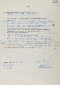 Currículo de Lygia Clark para a Bibliotheque cantonale et universitaire, Lausanne e que consta informações pessoais sobre a artista, incluíndo dados sobre suas obras e exposições.