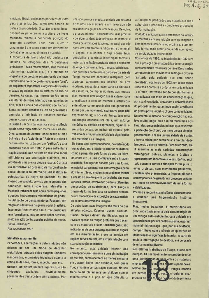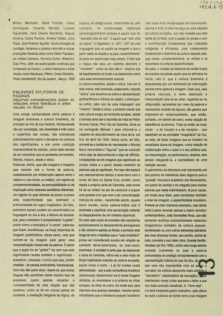 Catálogo referente à exposição "Brasil: Segni d'art", realizada na Itália e que possuía como objetivo expor documentos sobre a produção de catálogo livros de artistas e vídeos de arte contemporânea brasileira; constituiu interessante evento para a presença e o conhecimento artístico do Brasil na Itália.