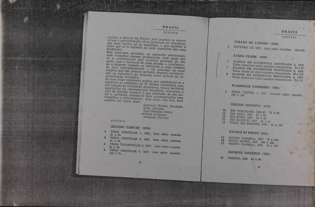 Catálogo da exposição "IV Bienal do Museu de Arte Moderna de São Paulo", realizada no MAM/ SP em 1957. A mostra recebeu obras de Lygia Clark.