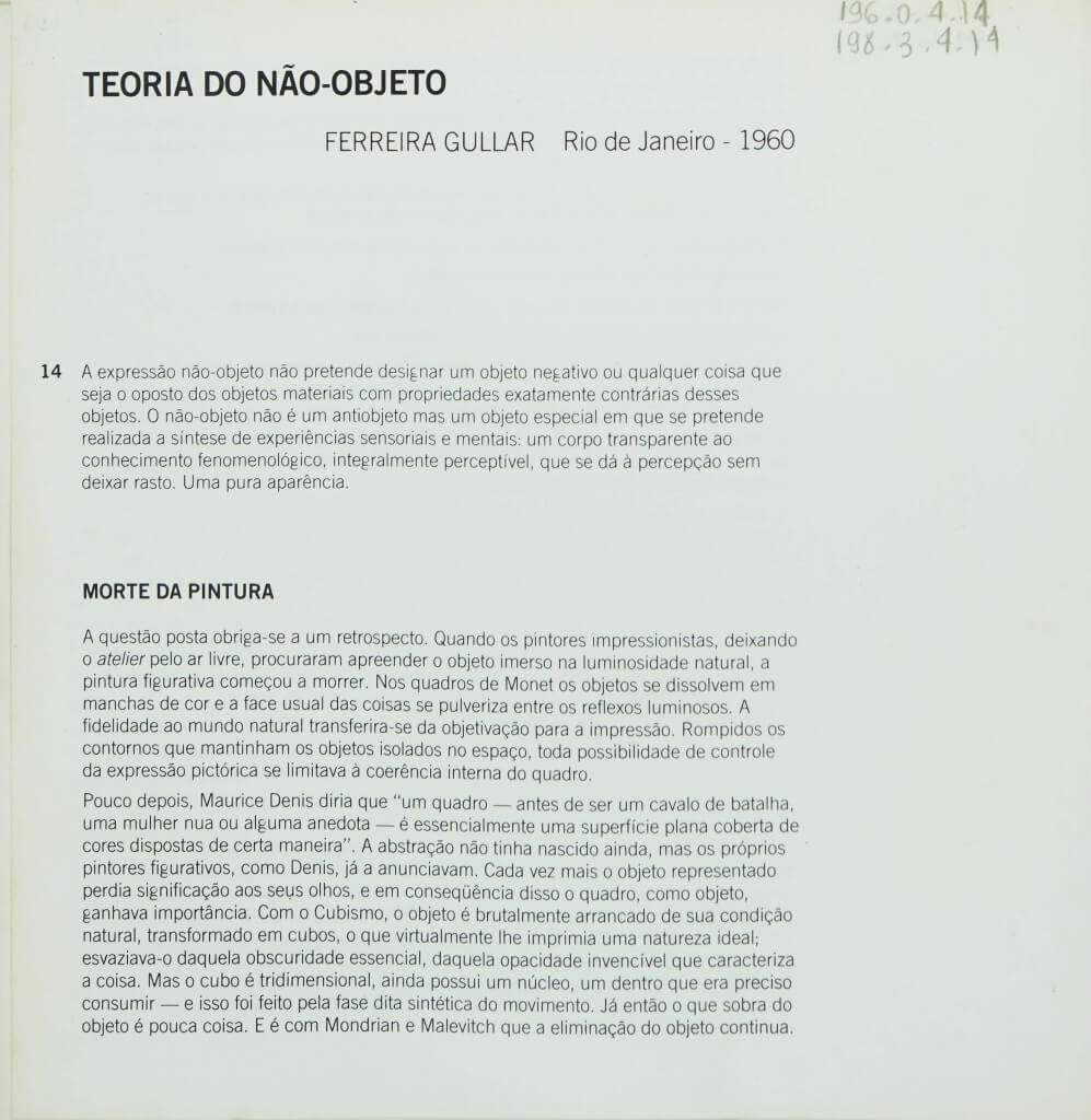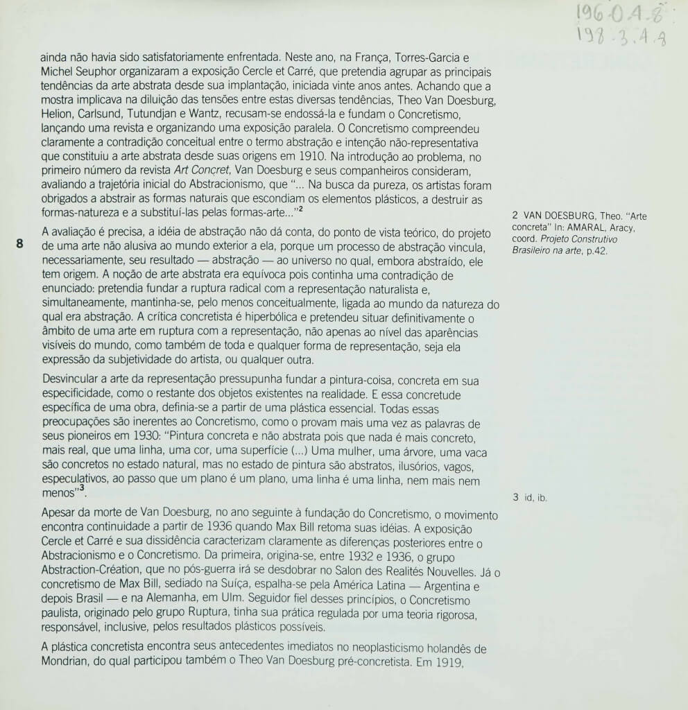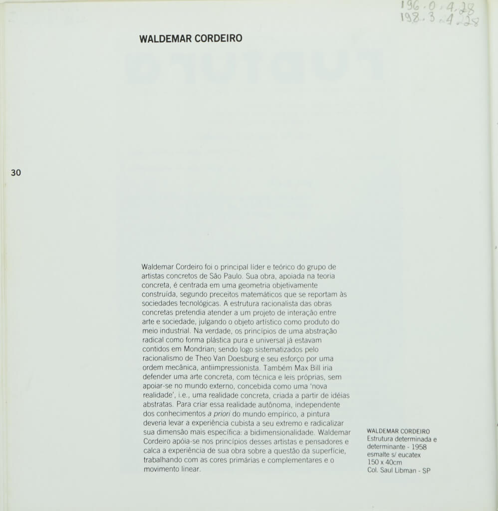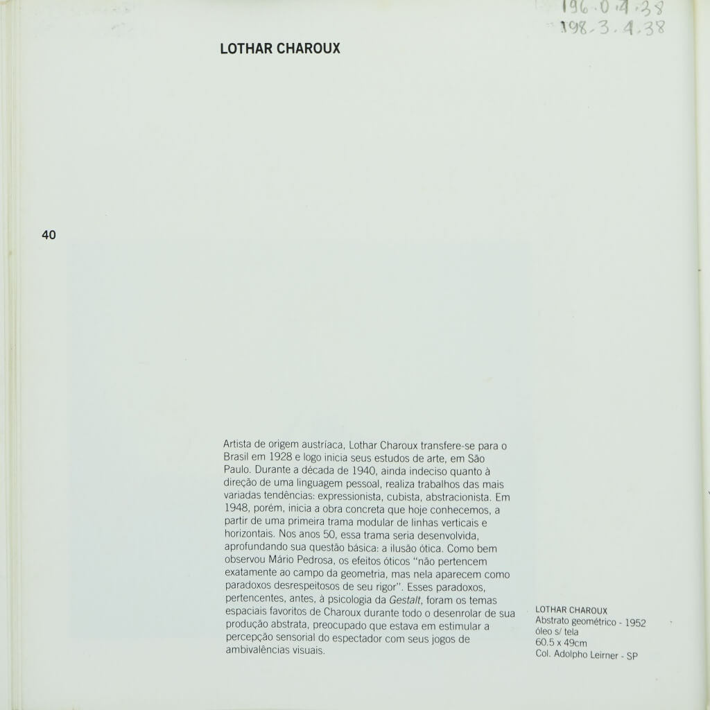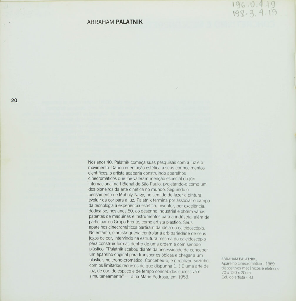 Catálogo da exposição Abstração Geométrica, realizada no âmbito do "Projeto Arte Brasileira", realizado pela FUNARTE/Instituto Nacional de Artes Plásticas. As exposições fizeram itinerância nas salas FUNARTE. Neste catálogo, breve histórico da carreira de cada artista. Destaque para Lygia Clark, capa da publicação.