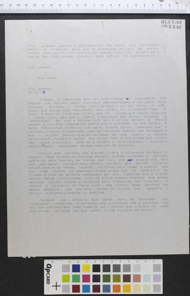 Transcrição das sessões "terapêuticas" realizadas com a paciente Vera no período de 22 de setembro de 1976 a 4 de janeiro de 1977