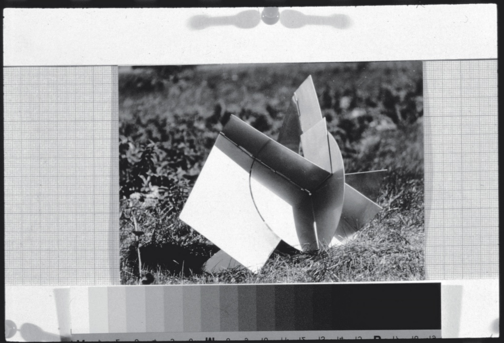 Aobra apresenta 04 planos distintos unidos através de dobradiças em eixo central. Cada plano é divido em 04 placas com medidas irregulares. As placas são numeradas de 1 a 16. Descrição técnica – Plano 1 – quadrado 25.0 x 25.7cm: placa1: 15.3 x 17.5cm; placa2: 15.3 x 7.5cm; placa3: 10.2 x 7.3cm; placa4: 10.0 x 17.6cm. Plano 2 – círculo ø 25.4cm: placa5: 13.0 x 17.8cm; placa6: 12.6 x 7.1cm; placa7: 10.0 x 7.0cm; placa8: 9.7 x 18cm Plano 3 – círculo ø 25.3cm: placa9: 13.3 x 17.8cm; placa10: 12.7 x 9.8cm; placa11: 6.9 x 10.0cm; placa12: 17.7 x 9.8cm. Plano 4 – quadrado 25.3 x 25.2cm: placa13: 17.9 x 10.0cm; placa14: 9.8 x 7.6cm; placa15: 15.4 x 7.6cm; placa16: 15.4 x 17.9cm.