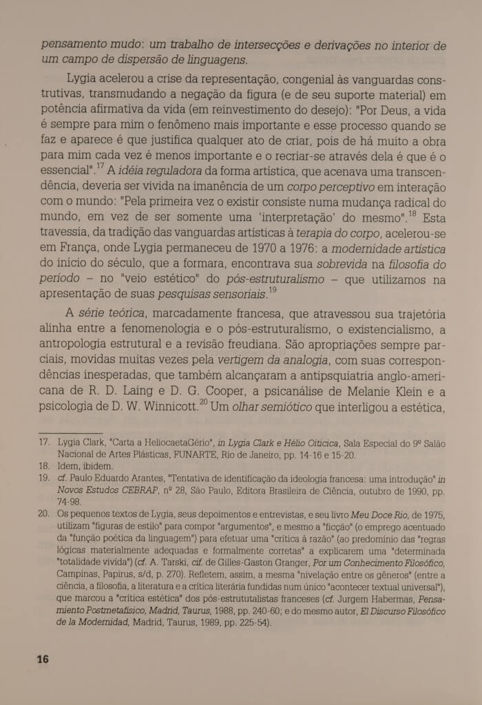 FABBRINI, Ricardo Nascimento. O espaço de Lygia Clark. São Paulo: Atlas, 1994.