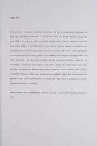 ALMEIDA, Eduardo Augusto Alves de. Aspectos da estruturação do self de Lygia Clark. Perspectivas críticas. Dissertação de mestrada apresentada ao Programa de Pós-graduação Interunidades em Estética e História da Arte. São Paulo, 2013. 248f.