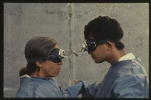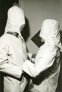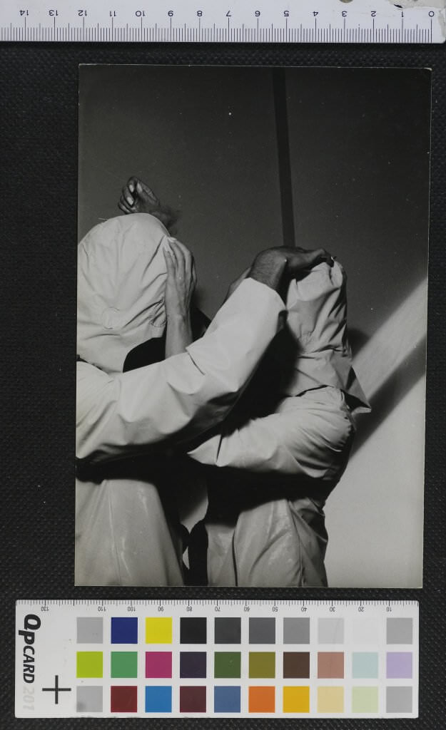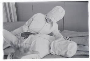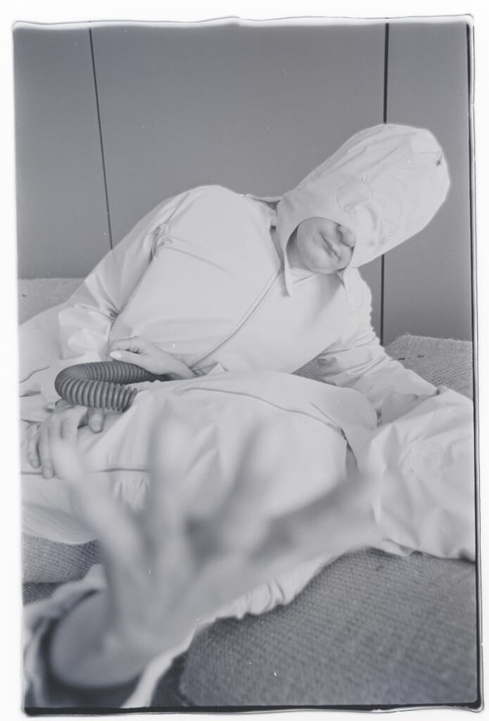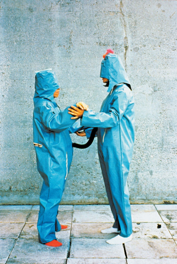 Proposta pensada para um casal, na qual o homem e a mulher estão vestidos com um macacão de plástico. Os macacões têm um forro interior confeccionado com materiais diversos (saco plástico cheio de água, espuma vegetal, borracha, etc.), que proporciona ao homem uma sensação feminina e à mulher uma sensação masculina. Um capuz, feito do mesmo material plástico recoberto de tecido, tapa os olhos dos participantes, e um tubo de borracha, como um cordão umbilical, une os dois macacões. Tocando-se, os participantes descobrem pequenas aberturas nos macacões (6 fechos eclair) que dão acesso ao forro interior, traduzindo as sensações experimentadas pelo outro. Deste modo, o homem se encontra na mulher e ela se descobre no corpo do homem.