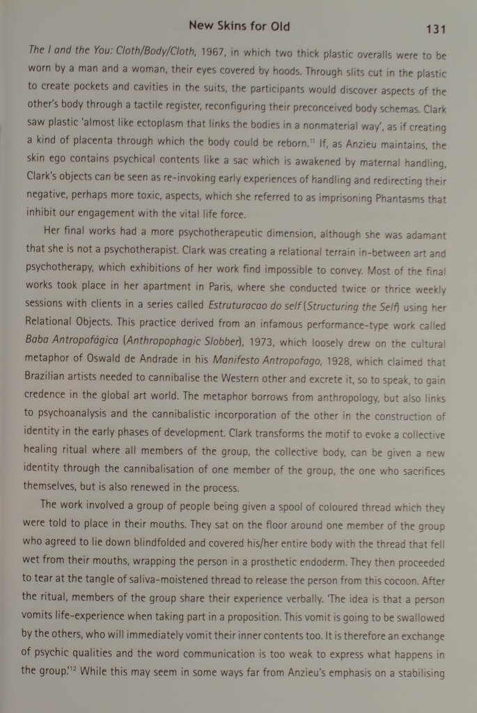 Análise da psicanálise como recurso para os artistas, críticos de arte e historiadores de todo o século XX. A artista Lygia Clark é referencia no livro, através de suas obras: O eu e o tu, 1967; Bichos, 1960-63; Objetos sensoriais, 1967; Caminhando, 1964; Baba antropofágica, 1973.