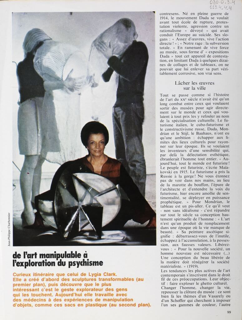 Reportagem que aborda a forma como as obras de Lygia Clark são criadas e manipuladas.