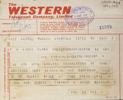 Carta enviada por David Medalla à Lygia Clark sobre trabalhos realizados pela artista e por ele.