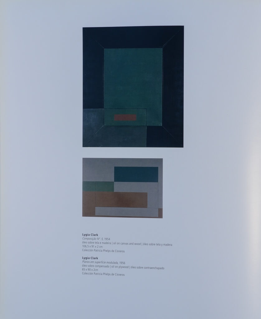 Catálogo produzido por ocasião da exposição Desenhar no Espaço: Artistas Abstratos do Brasil e da Venezuela na Coleção Patrícia Phelps de Cisneros, o qual consta um breve histórico da carreira artistica de Lygia Clark e algumas de suas obras.