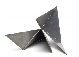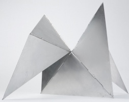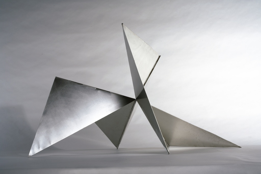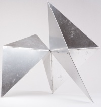 Peça composta por 7 triângulos agudos (chapas de alumínio), unidos por dobradiças.
