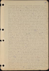 Na semana passada tive um sonho, que é uma constante na minha vida. Sonho que estou tirando uma substância de dentro da minha boca, parecendo um chiclets imenso, sem fim. Fico sempre angustiadíssima e essa matéria nunca acaba de sair de dentro de minha boca. Desta vez porém, o sonho teve uma segunda parte. Depois de angustiadíssima puxar pra fora uma enorme quantidade desta substância, eu percebi que, essa substância havia ficado consistente como um enorme tubo de borracha e que o mesmo, fazia parte integrante do meu organismo. Diante desta percepção, começo a introjectar esse tubo e, consigo engoli-lo totalmente, espantada como o poderia ter conseguido. Acordei e pensei numa serie de coisas. A percepção de que sou realmente uma pessoa de muita voracidade e pessoas na vida, foi de uma agudeza extraordinária. Fiquei muito angustiado pois percebi que, antes desse sonho, nos outros em que eu só perdia essa substância e vivia naturalmente isso como perda, a voracidade na vida me era despercebida e era uma maneira de compensar essa perda. No momento em que consegui integrar essa substancia dentro de mim, eu começo a perceber essa mesma voracidade de que sou possuída! Essa decaláge é que me angustia embora saiba perfeitamente ser esse processo inconsciente o primeiro passo, para que essa integração se dê na vida, perdendo aí a voracidade. Só tive esse sonho por motivos absolutamente ligados a minha ultima fase. Primeiro os plásticos sensoriais que eu chamava de “nostalgia do corpo” e depois a “roupa-corpo-roupa” em que o corpo já era em si mesmo a expressão. Em seguida fiz os capacetes sensoriais em que as pessoas se sentem em um mundo totalmente mágico como o L.S.D. Depois pensei no capacete sensorial muito-viceral, que seria a vivência do sonho e nele havia uma boca falsa de onde a pessoa puxava para fora uma substância, que nunca acabava de sair. Depois que pensei em executar esse último, que alias sabia ser menos importante que os outros já executados, foi que me veio esse último sonho. Deus meu, o que falta ainda para me elaborar? Me lembrei da gosma que tiram de dentro da boca no nascimento. Lembrei-me ainda que, quando criança, eu sofri tifo 2 vezes e que enfiavam dentro da minha garganta um pau comprido para fazerem a limpeza do pus. Sonhei também que havia uma criancinha que teria sido molestada sexualmente por uma pessoa que seria eu, a mãe. O que me veio na cabeça era o fato da criancinha não ter sofrido nada que atingisse seriamente a sua integridade física. Pensei seriamente sobre esse sonho e me lembrei da minha mãe Italiana, mãe de leite onde passei alguns meses de vida na sua casa. O que me teria acontecido nessa época? Sonhei também que a minha neta, que tem o meu nome, havia virado um ratinho, que corria corria e de repente virava ela outra vez deitada na cama. Evidentemente era eu a garota. Estou mortalmente angustiada por problemas objetivos mas talvez esteja muito mobilizada também pois devo está começando um outro processo de crescimento interior. Tenho tido vivências importantes. Pensei muito nos Hippies como talvez a primeira geraçaõ de jovens que naõ precisaraõ de fazer qualquer proposiçaõ de arte para se expressarem. Acho que eles estaõ tentando essa comunicação através da própria vida. É belo! Tendo sido fundido sujeito-objeto na comunicação da arte (a imanência substituindo a transcendência) entrando o ato como única coisa viva, é lógico que as forma de expressar qualquer comunicação seja pela arte, religiaõ ou espaço tempo que ainda possam sobreviver é a imanência de iluminuras na própria vida. Já naõ há o devenir. Tudo se passa no “agora”. Seria o próprio nirvana o que eles se propõem? Esses intelectuais que se dizem os seus líderes são aderentes pois ainda precisam de uma formulação como nova ideologia para explica-los ou desculpa-los. Os verdadeiros Hippies não são os que fazem teorias ou tiveram experiências Zen. Eles vivem simplesmente o momento. Quando fiz o caminhando em 1963, já tinha consciência do problema do ato e da imanência. Me perguntava se qualquer gesto na vida, poderia adquirir magia como era a experiência do caminhando. Os Hippies já responderam que sim. Substituíram a aliança por uma faixa e o casal se enlaça na mesma, num ritual novo, mágico e tribal. Seria inútil tentar me identificar com eles. Mesmo que minha expressão seja infra-sensorial e que eu os entenda de há muito pois a minha dedicatória no meu livro de Londres já era para esses jovens que sempre considerei por excelência existenciais, sou ainda aquela que precisa de fazer uma série de proposições vivenciais para o outro. Na vida há muito