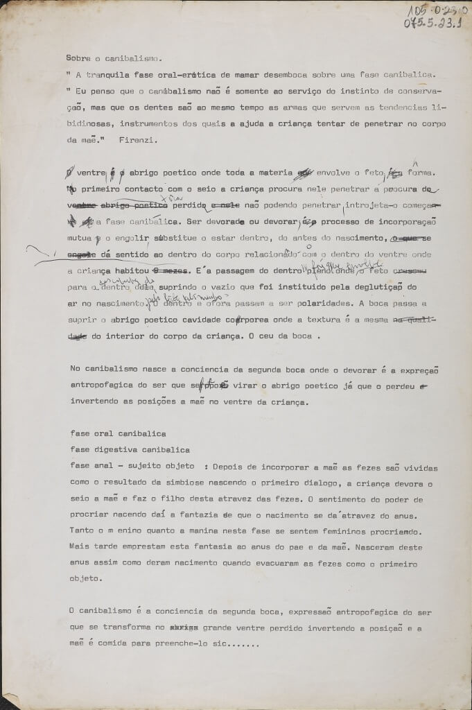 texto sobre a ideia de canibalismo no ato da criança mamar no peito da mãe e na tentativa de penetrar o corpo desta.