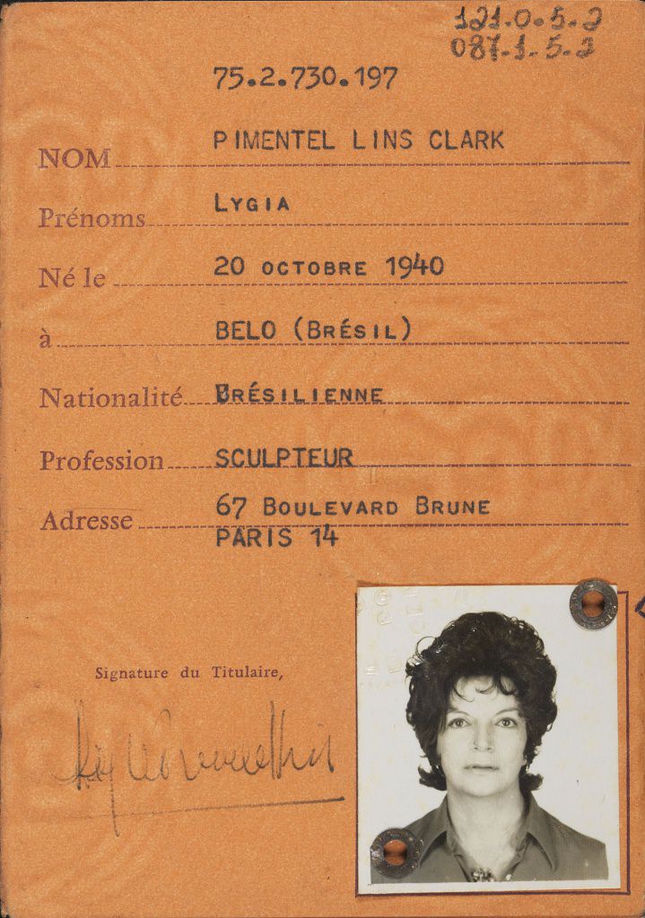 O documento é o cartão de permanência temporária na França, de Lygia Clark, válido de 18 de novembro de 1975/ 17 de novembro de 1976