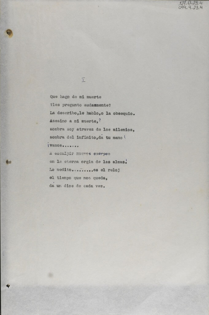 Poema "Um dios de cada vez", de Pablo Neruda, escrito para Lygia Clark, em 1964.