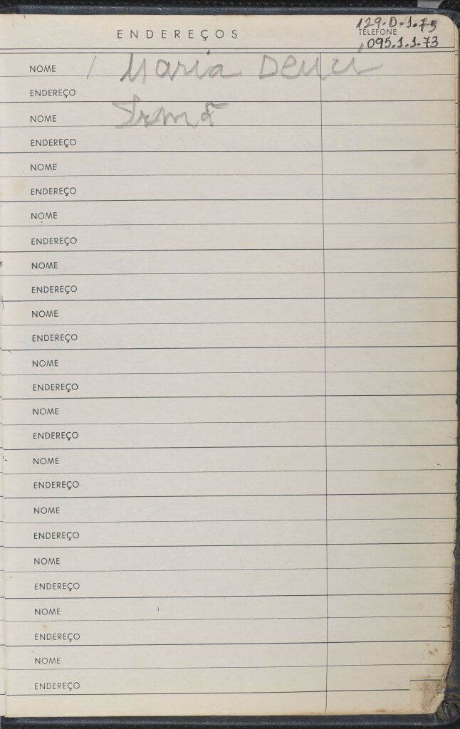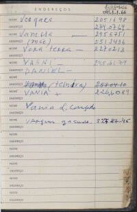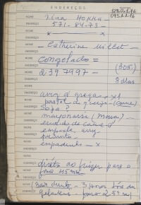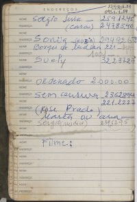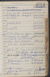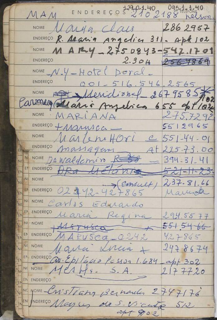 Caderneta telefônica, com contatos pessoais de Lygia, informações complementares, endereços e anotações diversas e algumas contas.
