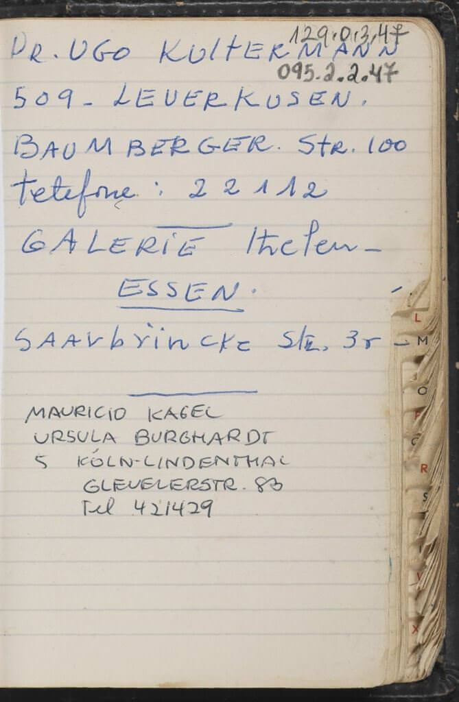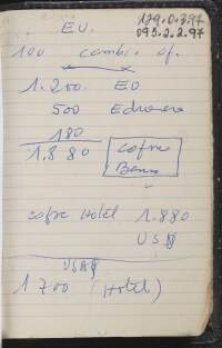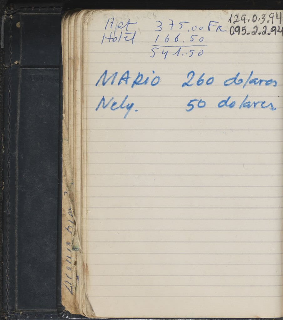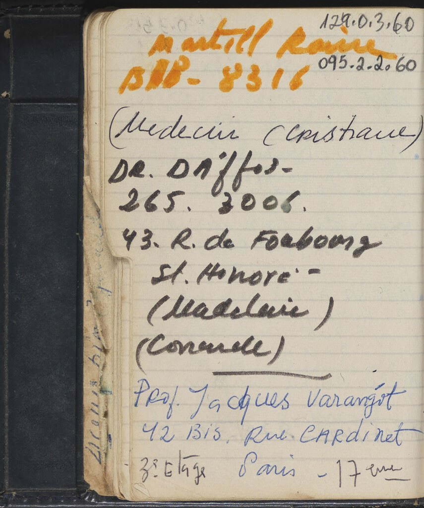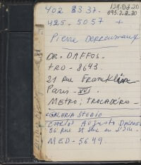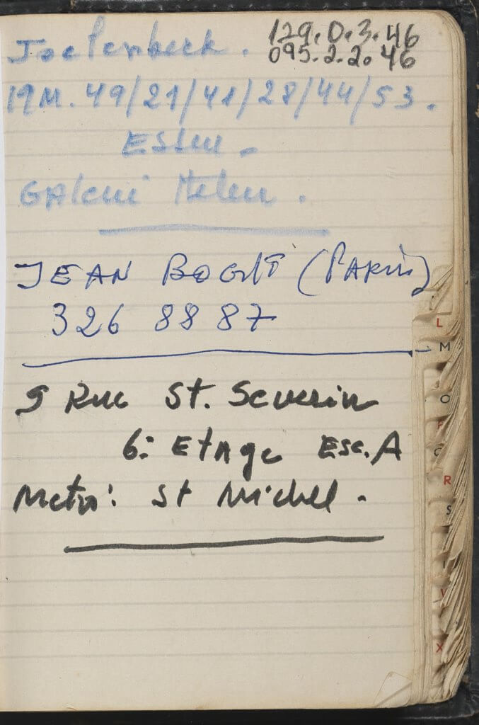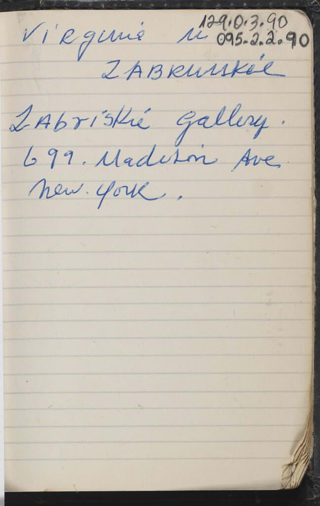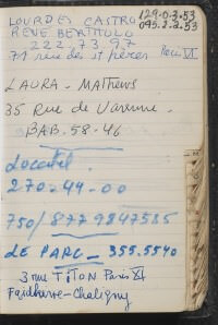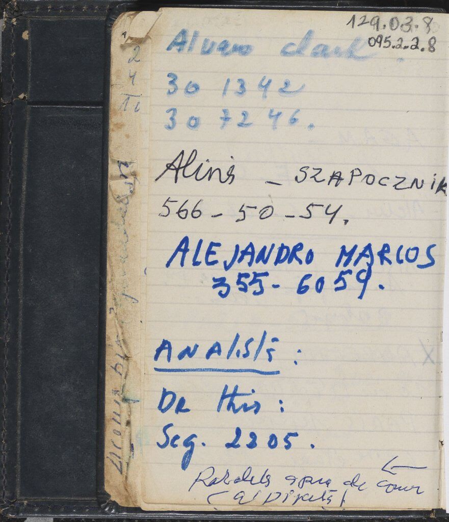 Caderneta telefônica, com contatos pessoais de Lygia, a maioria do exterior, com informações complementares, endereços, anotações diversas e algumas contas.
