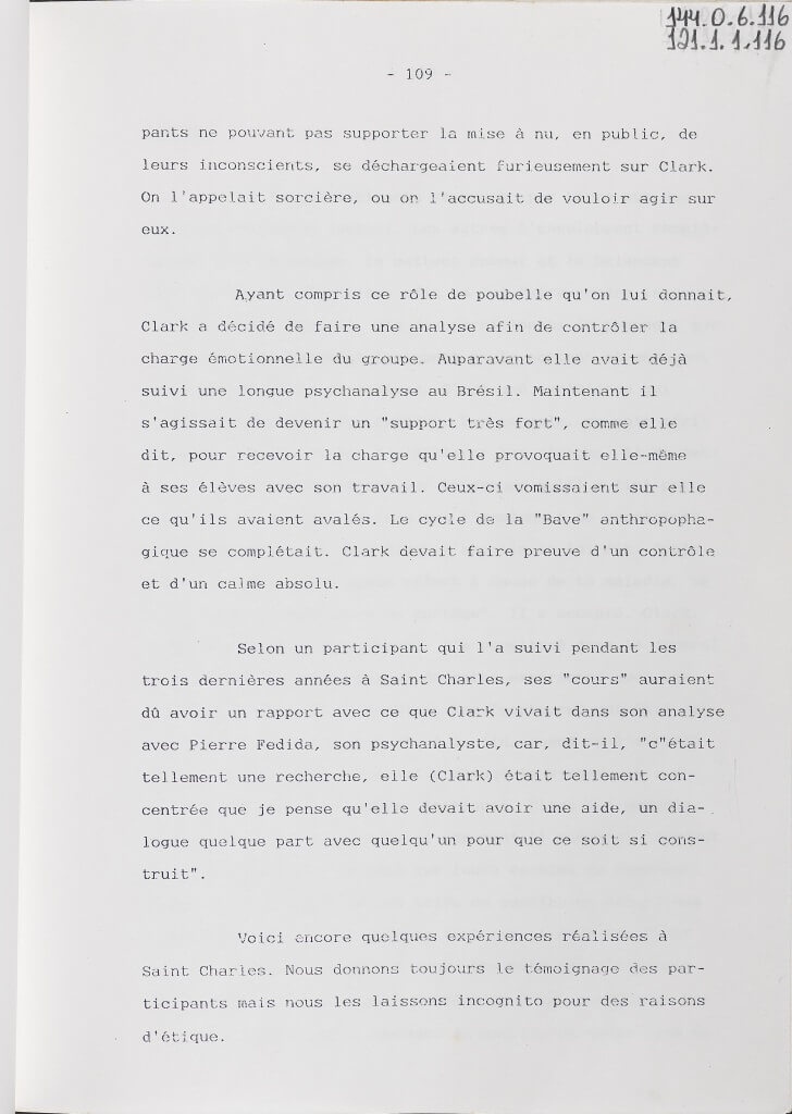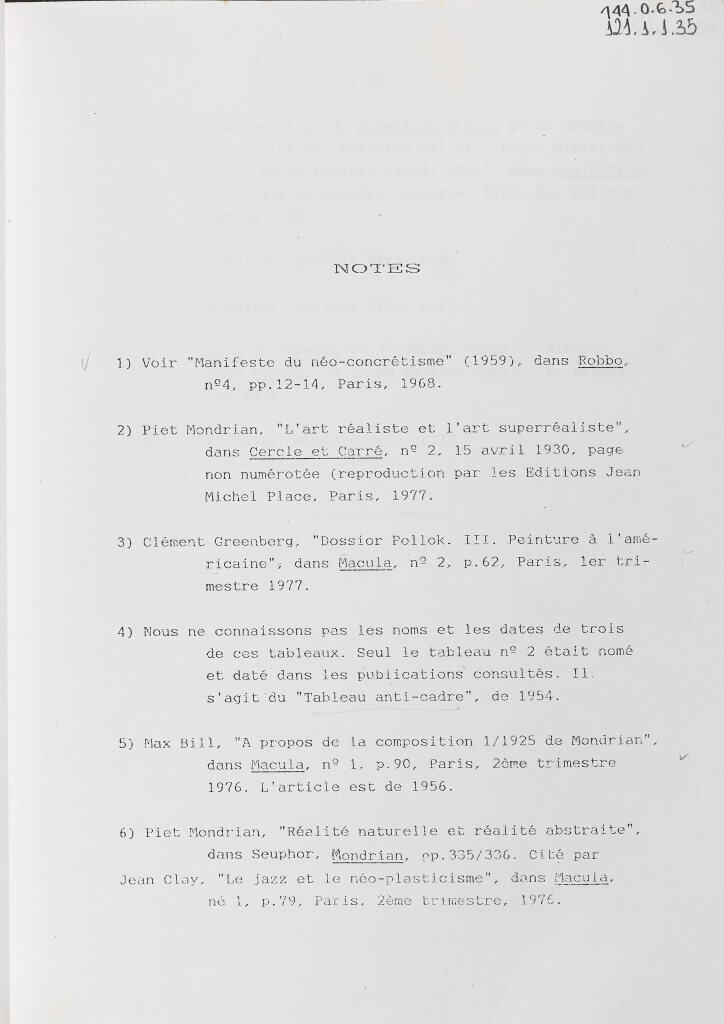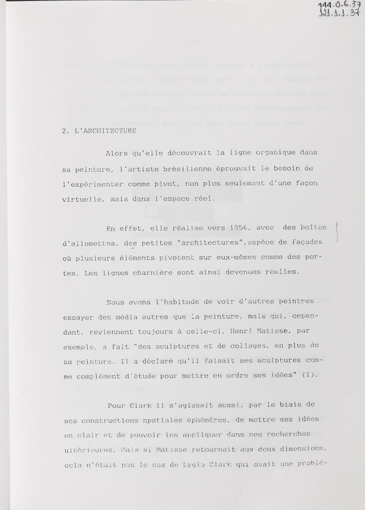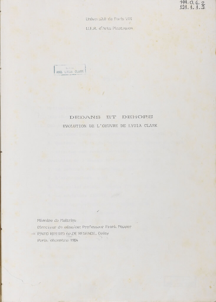 trabalho produzido pela Universidade de Paris, intitulado "Dedans et Dehors - Evolution de l'oeuvre e Lygia Clark", "dentro e fora - evolução da obra de Lygia Clark", em portugues, que aborda a trajetoria artistica de Lygia Clark, da fase neoconcreta até as proposições.
