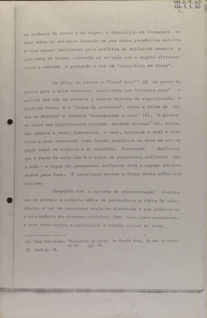 Tese de conclusão do curso de Especialização em História da Arte e da Arquitetura no Brasil, realizado na PUC do rio de Janeiro, feita por Maria Cristina Burlamaqui sob a orientação de Ronaldo Brito com o tema "A Dissoluçaõ do Objeto na Trajetória de Lygia Clark.