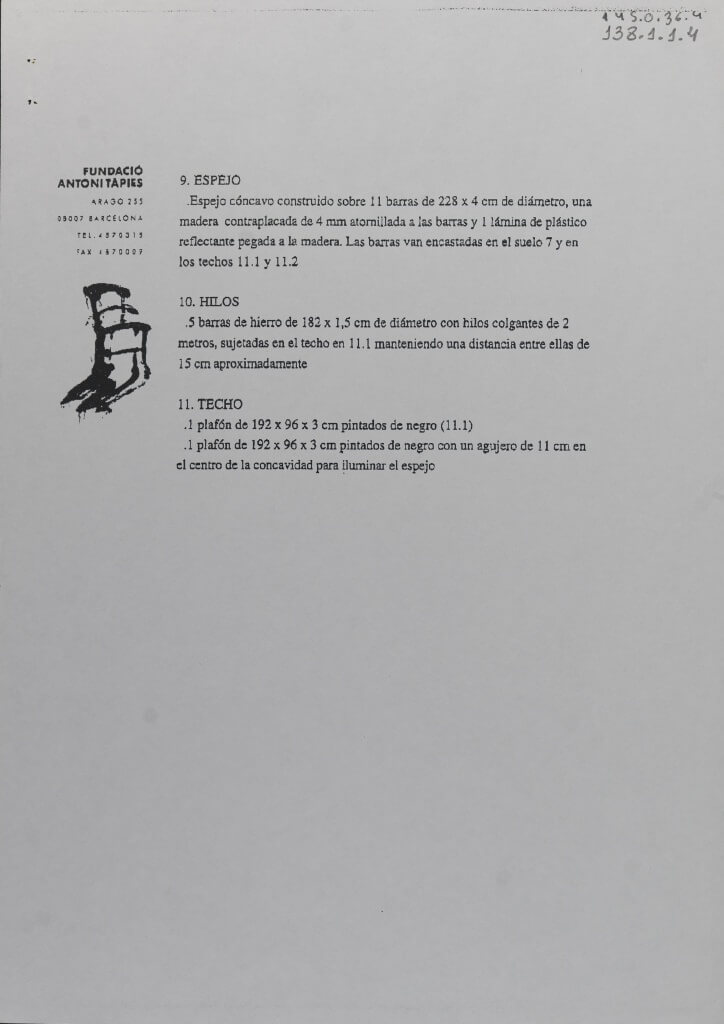 documentação da Fundacio sobre a obra "A casa e o corpo".