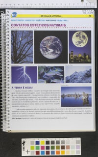 Apostila da editora Positivo do 8º ano do ensino fundamental sobre Educação Artística, traz uma pequena passagem sobre a produção de Lygia Clark e seu interesse pela participação do espectador.
