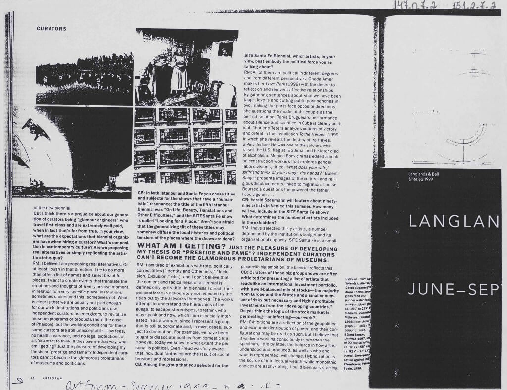 Entrevista de Carlos Basualdo com Rosa Martinez, curadora da exposição "SITE Santa Fe´s Third International Biennial: Looking for a Place".
