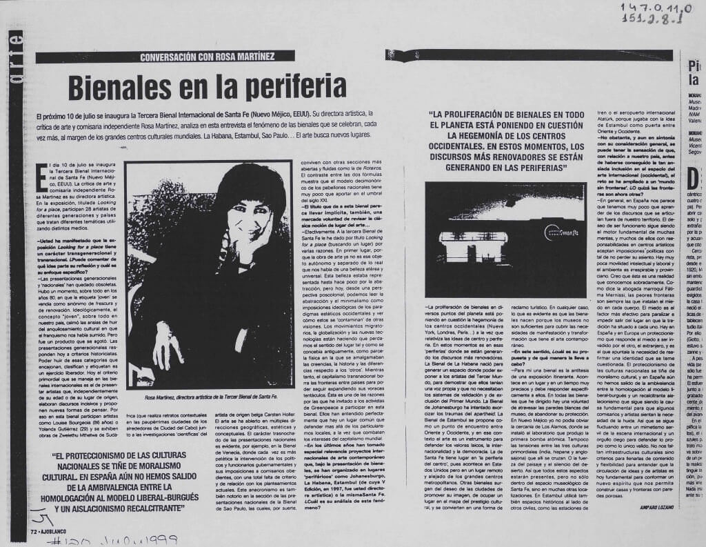 Entrevista com Rosa Martinez, curadora da exposição "SITE Santa Fe´s Third International Biennial: Looking for a Place".