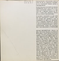 Catálogo da "Exposição Nº 6", realizada pela Galeria Bonino, Rio de Janeiro, entre 12 e 29 de outubro de 1960. Lygia Clark expôs 29 esculturas do seu trabalho da série "Bichos", por considerar seu caráter essencialmente orgânico. Consta uma breve nota biográfica sobre os primeiros passos, trabalhos e prêmios da artista.