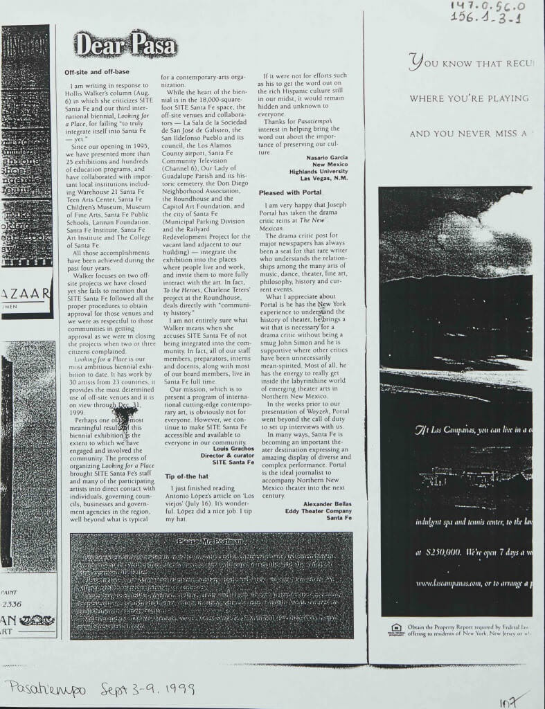 Louis Grachos, um dos curadores da "SITE Santa Fe´s Third International Biennial", rebate na seção de "Cartas da Revista Pasatiempo", a crítica de que a bienal não estaria integrada com a comunidade local.