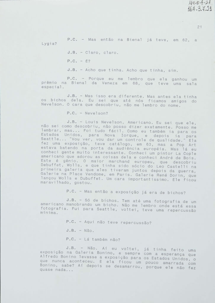 entrevista de Jean Boghici para Paula Cristina Terra sobre Lygia Clark.