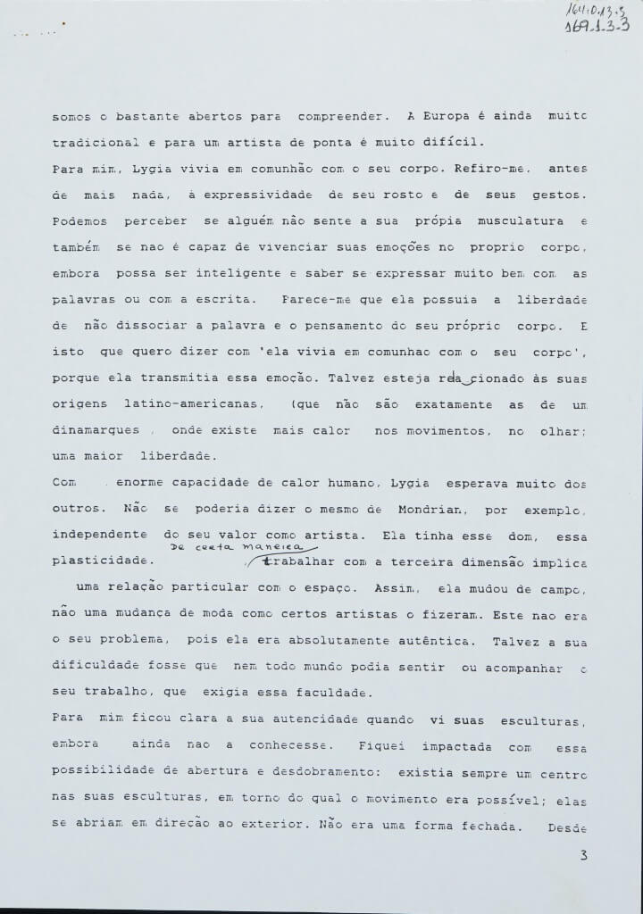 entrevista de Eva Equem para Gloria Ferreira sobre Lygia Clark.