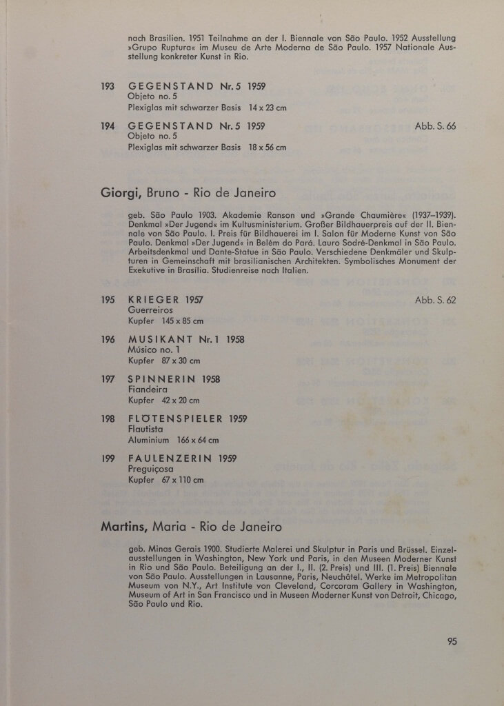 Catálogo da exposição "Brasilianischer Küntler" realizada na galeria Haus Der Kunst München em 1959. A exposição recebeu obras de Lygia Clark.
