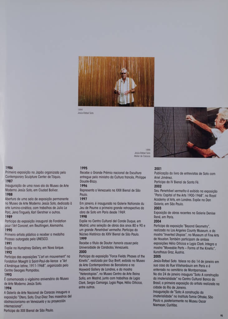 FILHO. Paulo Venâncio. Soto - a construção da imaterialidade. Rio de Janeiro : Centro Cultural Banco do Brasil, 2005. 166 p. Catálogo. ISBN: 8585688246 9788585688240