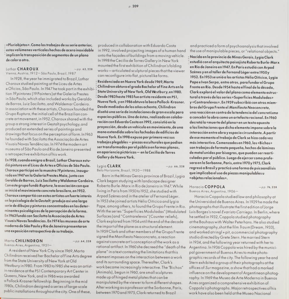 Livro sobre os artistas latinoamericanos do século XX, publicação por ocasião da exposição The Sites of Latin American Abstraction, curador Juan Ledesma, organizado pela Cisneros Fontanals Art Foundation, em 2007, Miami. As obras de Lygia Clark expostas são: Casulo, 1960; Livro obra, 1983; Bicho, 1960.