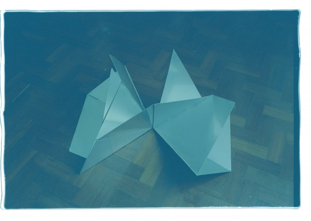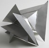 Obra composta por 8 cortes em metal triangulares (numeradas) e 8 partes trapezoidais (também numeradas), perfazendo um total de 16 partes articuladas por dobradiças.