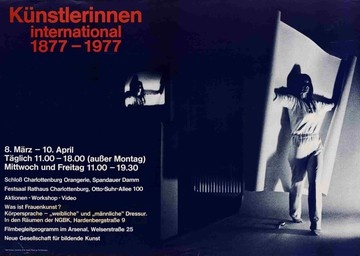 As pintoras Sarah Schumann, Evelyn Kuwertz e cinco outras mulheres do grupo de trabalho “Mulheres nas Belas Artes” da associação artística de Berlim Ocidental Neue Gesellschaft für Bildende Kunst (NGBK) apresentam a exposição "Künstlerinnen internacional: 1877 – 1977" no Palácio de Charlottenburg, Berlim, com mais de 500 obras de 182 artistas mulheres, entre elas Lygia Clark, Hannah Höch, Meret Oppenheim e Eva Hesse.