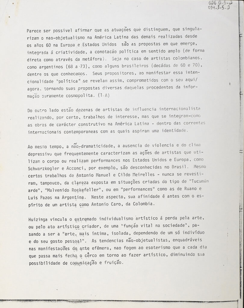 Texto crítico produzido por Aracy Amaral para o primeiro Coloquio Latinoamericano sobre Arte no Objetual, no Museo de Arte Moderno de Medellin.