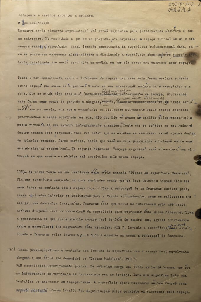 Textos reflexivos de Lygia sobre a construção de algumas de sua obras: Linha orgânica, Influência de Albers, Mondrian, Especulações, onde expõe o sentido, a razão e o significado que tinham para a autora em seu desenvolvimento. Tais textos são anotações para o Livro-Obra de Lygia Clark.