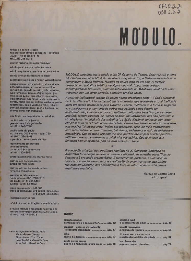 Capa da revista "Módulo", em que verifica-se uma homenagem a Mario Pedrosa.