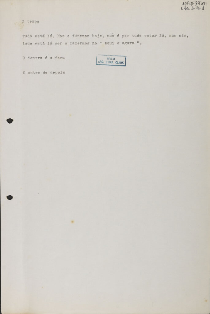 Texto sobre o tempo, o aqui e agora, o dentro é o fora e o antes do depois