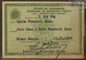 O documento é a carteira de identidade de Lygia Clark, datado de 22 de agosto de 1973