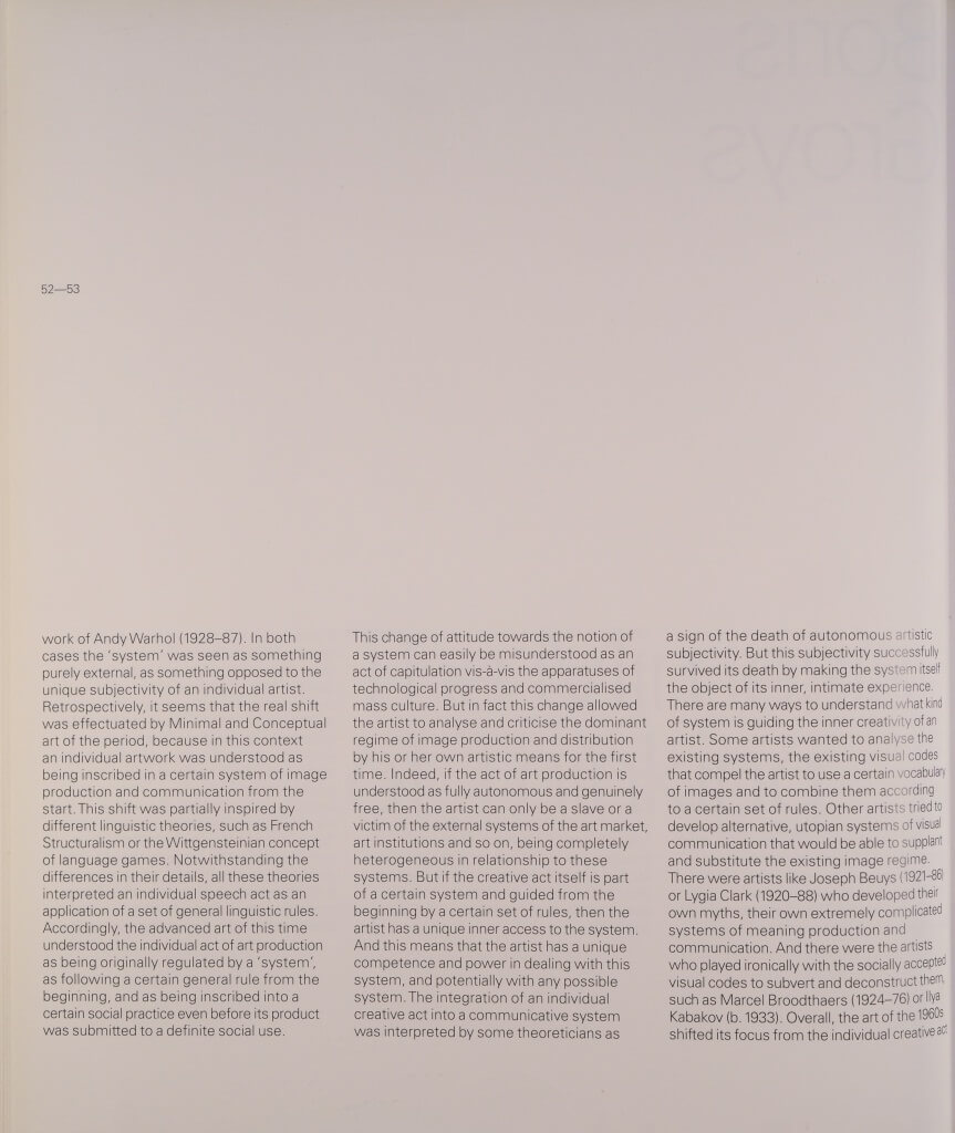 GODFREY, Mark. From Box to Street and Back Again: An inadequate descriptive system for the Seventies. In: DE SALVO, Donna (Org.). Open Systems: Rethinking Art c. 1970. Londres / Reino Unido: Tate Publishing, 2005. p. 24-31. Catálogo. ISBN: 1854375652 9781854375650.