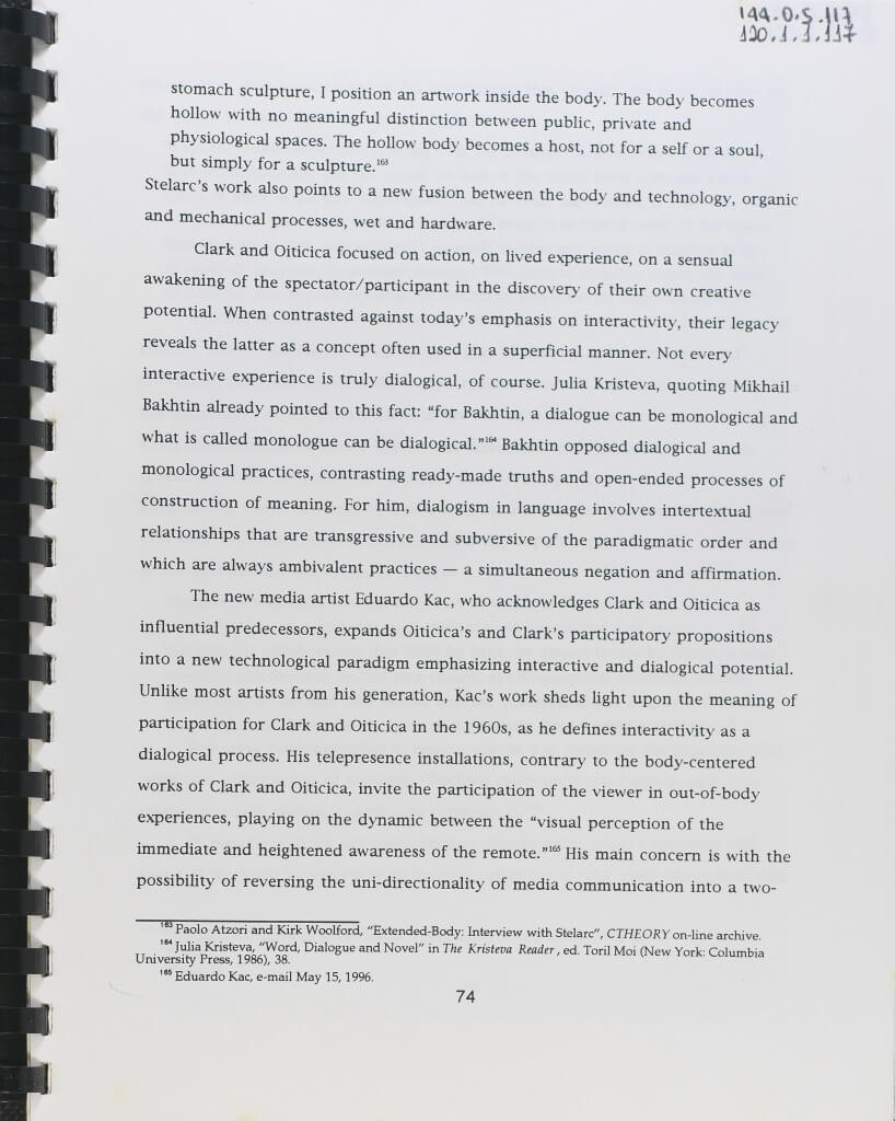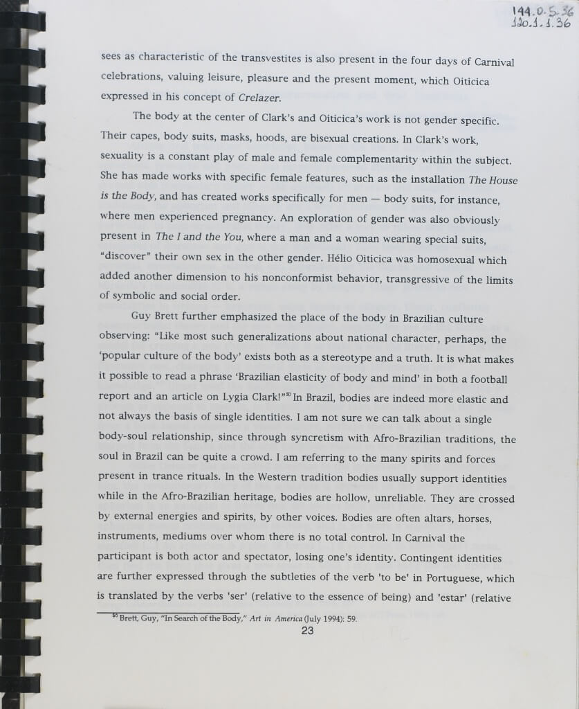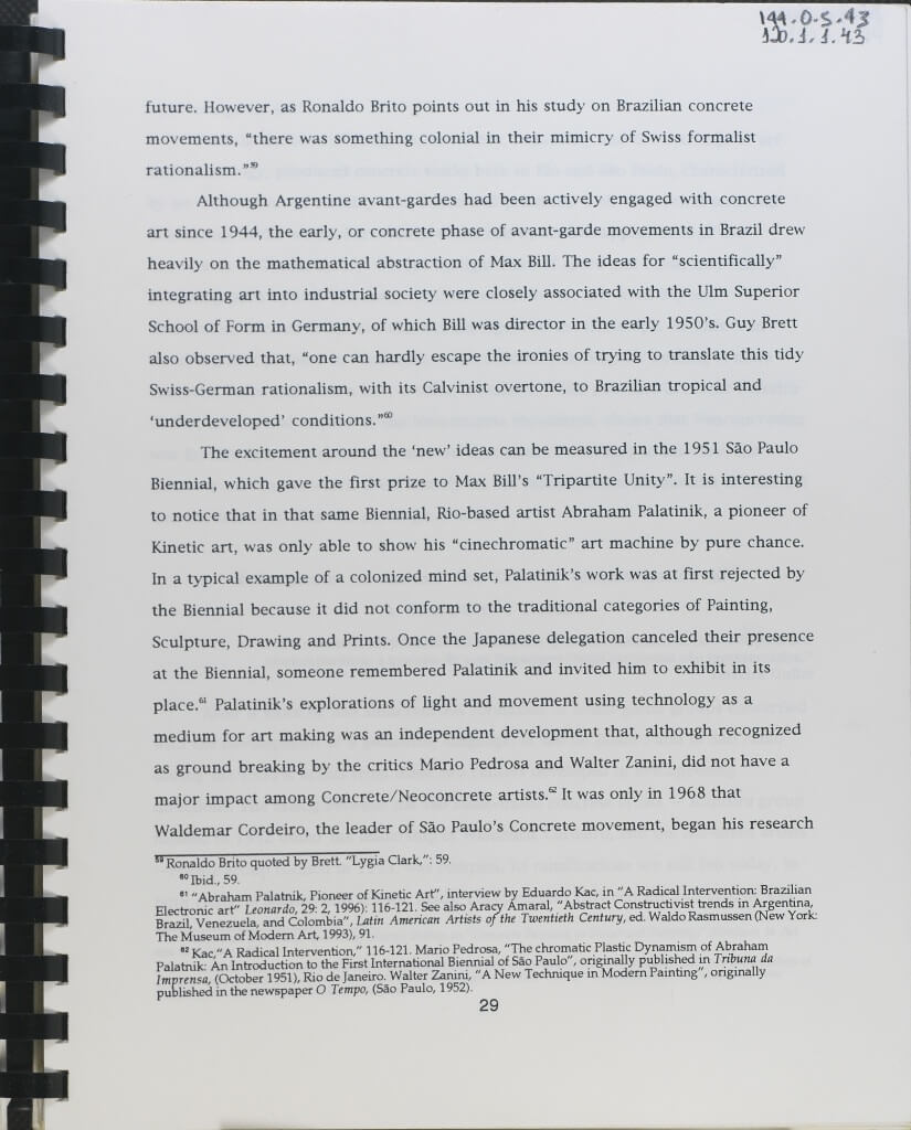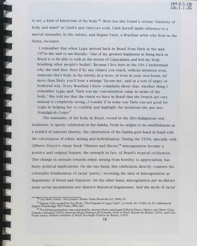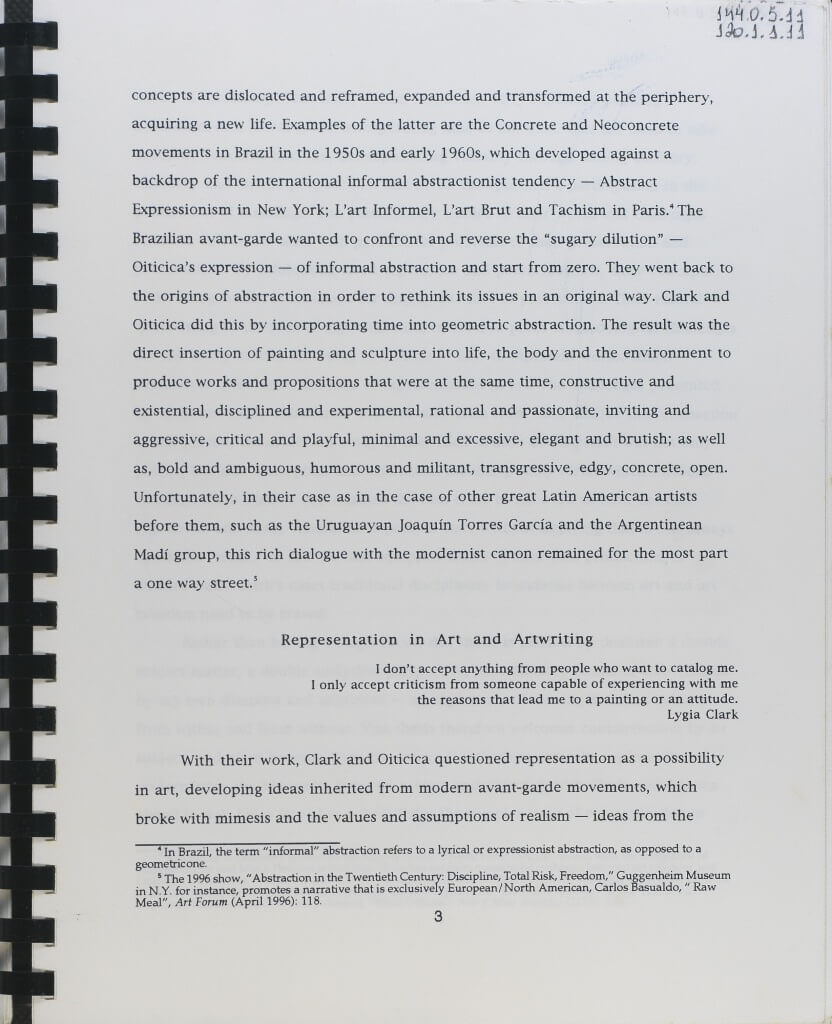 Tese de mestrado, de Simone Osthoff Sinsley, sobre a abstração geométrica em uma linguagem do corpo, para isso estuda movimentos artisticos brasileiros e foca nos artistas: Hélio Oicica e Lygia Clark, a partir de suas obras