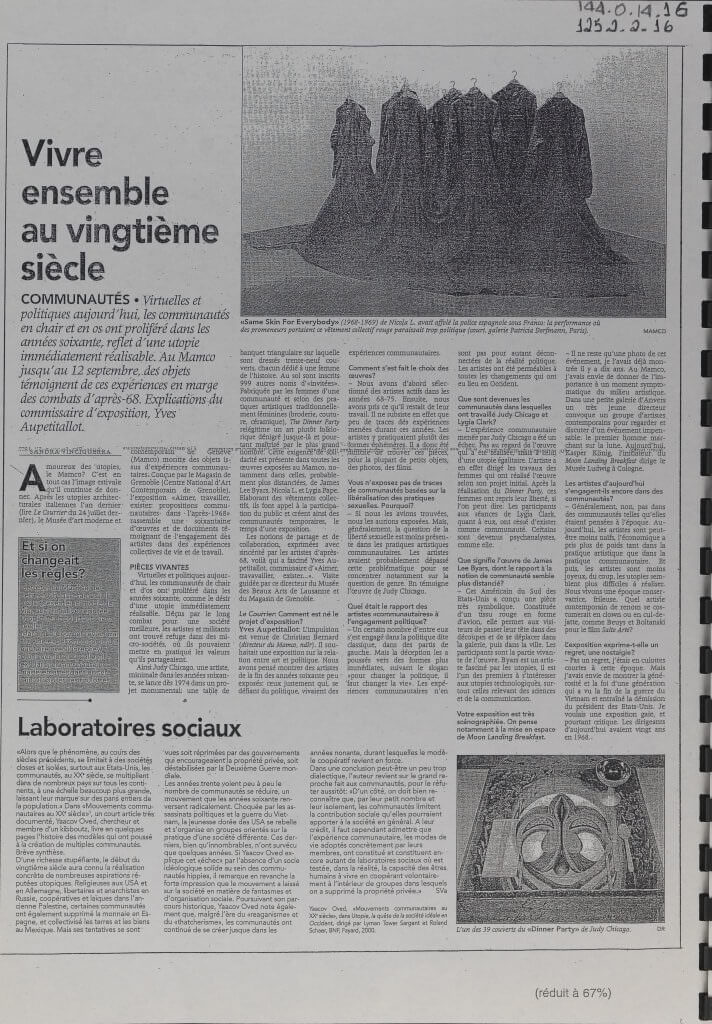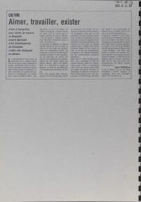 Noticiário sobre a exposição "Aimer, travailler, exister: propositions communautaires dans l'Apres/ 1968" realizada no Musée d´art moderne et contemporain de Genève/ Suíça em 2004.