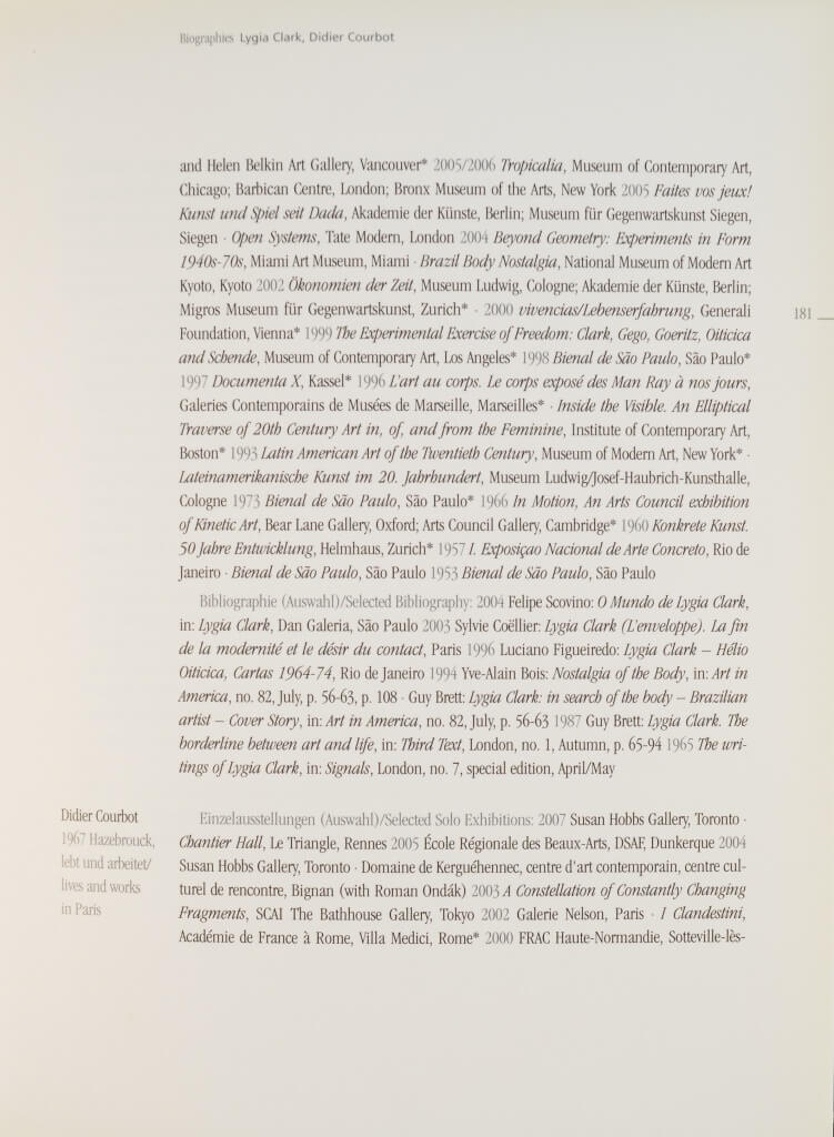Catálogo da exposição "Romantischer Konzeptualismus". A publicação apresenta trabalhos de 23 artistas internacionais e traz um breve histórico sobre a trajetória artística de Lygia Clark, juntamente com a descrição de algumas de suas obras.
